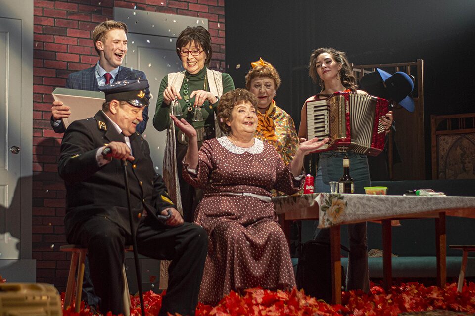 В основу постановки легла не столько гоголевская «Женитьба», как кажется на первый взгляд, сколько пьеса современного драматурга Андрея Ларионова, которая была создана специально по заказу театра для актеров старшего поколения.