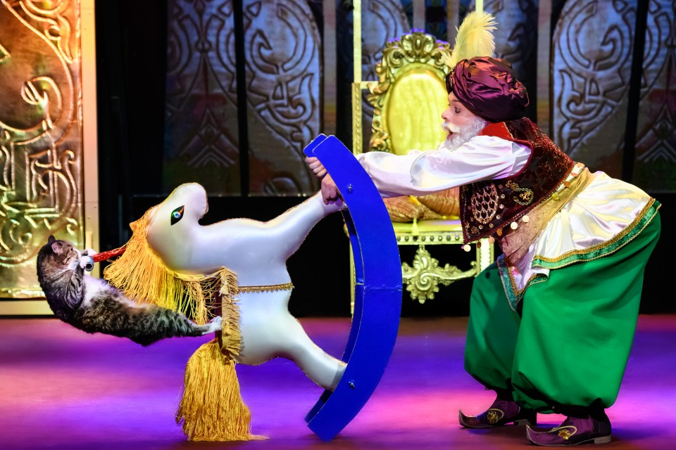 «Восточная сказка» – это по-настоящему волшебный спектакль, который смотрится на одном дыхании. Все артисты постарались на славу, но кошки – вне конкуренции. Они грациозно ходят по канату, словно каменные изваяния лежат у трона, забираются на шесты, выполняют опасные трюки. По ходу действия будет немало юмористических сцен, которые всегда сопровождаются смехом и аплодисментами.