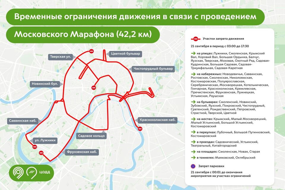 В 2025 году трассы Московского марафона обновились. Старт обеих дистанций пройдёт на Лужнецкой набережной, а финиш — на улице Лужники.