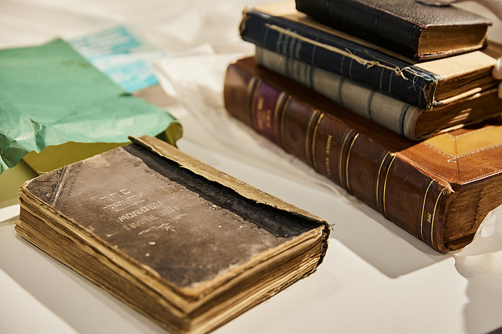 В 14:00 состоялась тематическая экскурсия по книжным фондам. Историк и библиотекарь Александра Киселева рассказал о том, как складывалась музейная библиотека, какие коллекции она включает в себя и как хранятся старинные издания. Гостям показали антикварные книги и издания из собрания советского врача и талмудиста Мануила Соловья.