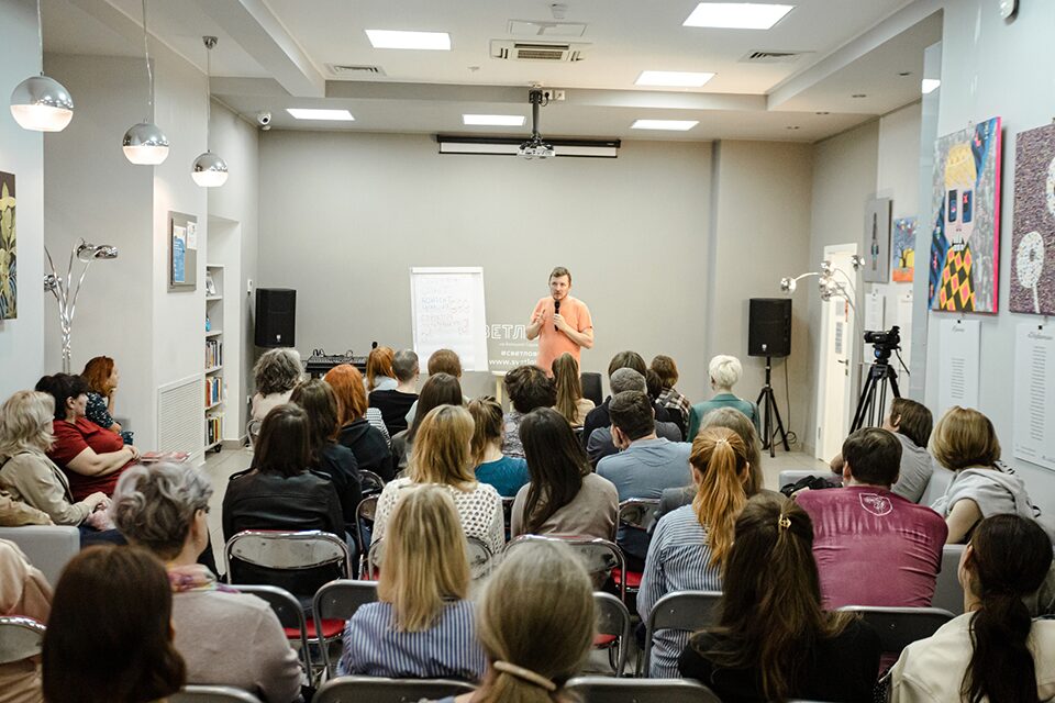 Практические философы Тихон и Иван Спирины провели мини-лекцию, из которой участники узнали техники совместного чтения сказок, а во второй части сами попробовали прочитать их, используя полученные данные.