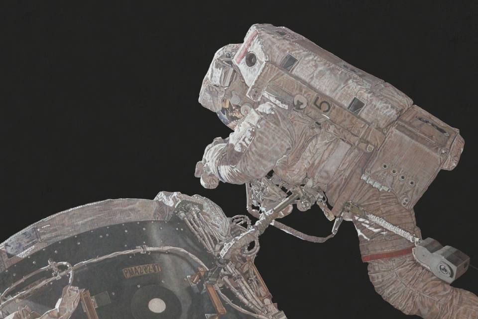 Мария Сафронова входит в Топ-100 признанных художников России по версии In-Art и включена в российский инвестиционный художественный рейтинг 49ART, представляющий выдающихся современных художников в возрасте до 50 лет. Ее работы находятся в коллекциях Музея Современного Искусства (Москва, Россия), Музея современного искусства Эрарта (Санкт-Петербург, Россия), Музея женщин и детей (Пекин, Китай), а также в различных частных коллекциях в России и за рубежом. Мария предоставила работы из серии «Вахта». Художница признается, что ее вдохновили космические снимки и современные фильмы о космосе. Она комбинировала реальные фотографии, найденные в интернете. Тема космоса ей очень близка, во времена СССР родители девушки работали в космической промышленности и участвовали в проектировании орбитального корабля «Буран».