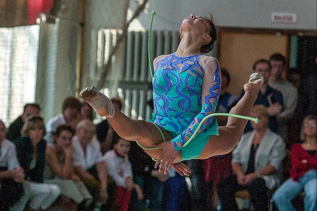 Олимпийская чемпионка (2004 год), гимнастка Алина Кабаева на показательной тренировке в Новогорске, 30 августа 2002 года.