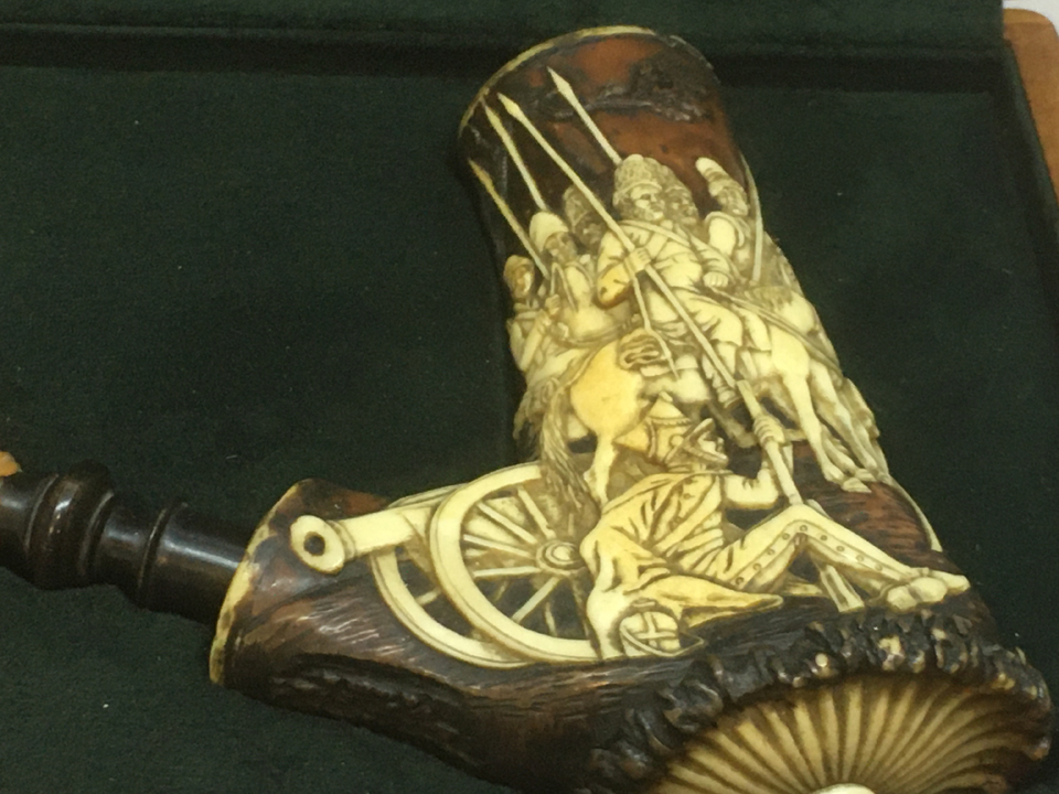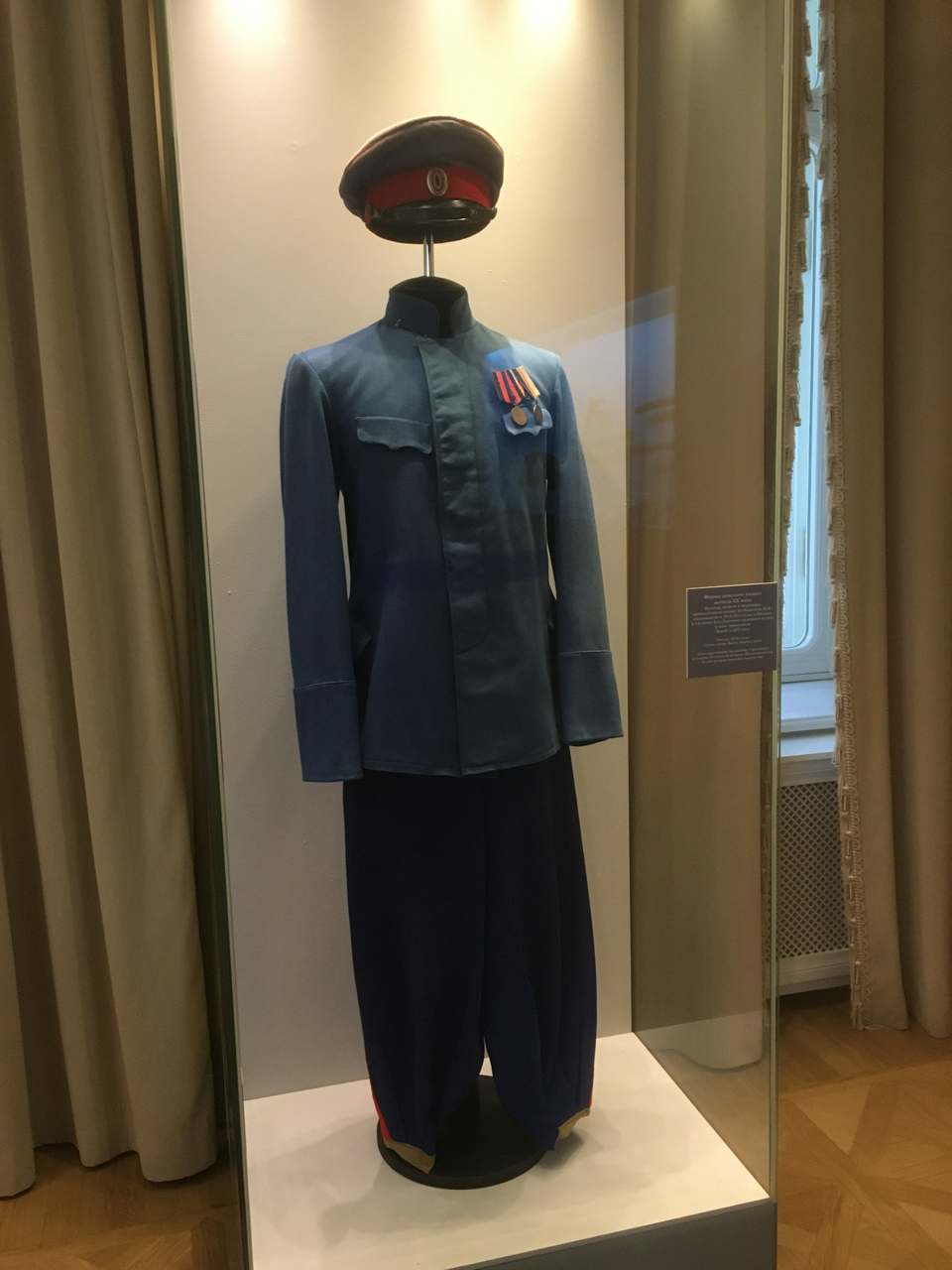 Из Новочеркасского музея истории донского казачества по такому случаю в Москву привезли мундир, принадлежащий знаменитому донскому казаку, герою Отечественной войны 1812 года, генералу Василию Васильевичу Орлову-Денисову, родоначальнику графского казачьего рода Орловых-Денисовых. Интересно, что последние дни своей жизни он провел в своем имении под Харьковом.