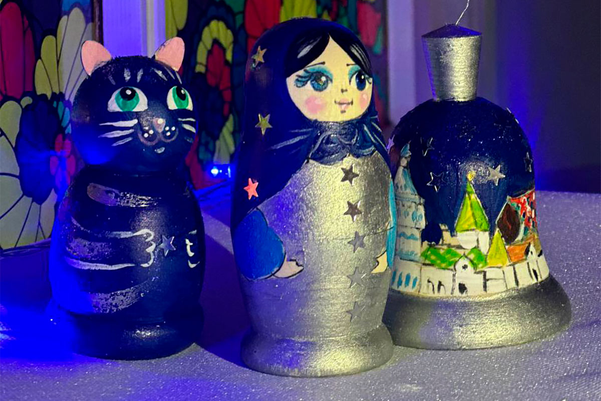 Здесь можно было расписать деревянных кота-баюна, Царицу ночи, а еще нарисовать на колокольчике ночной Кремль в Измайлово.