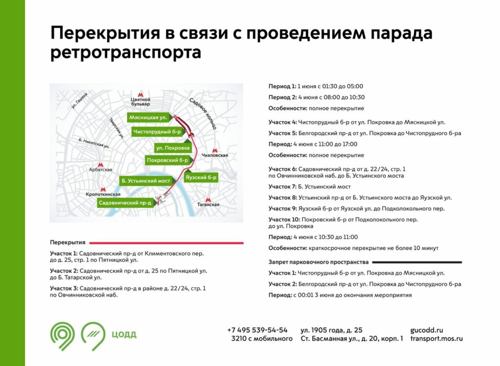 Во время ретропарада 4 июня перекроют некоторые улицы в центре Москвы, так что автомобилистам стоит заранее выбирать маршруты объезда.