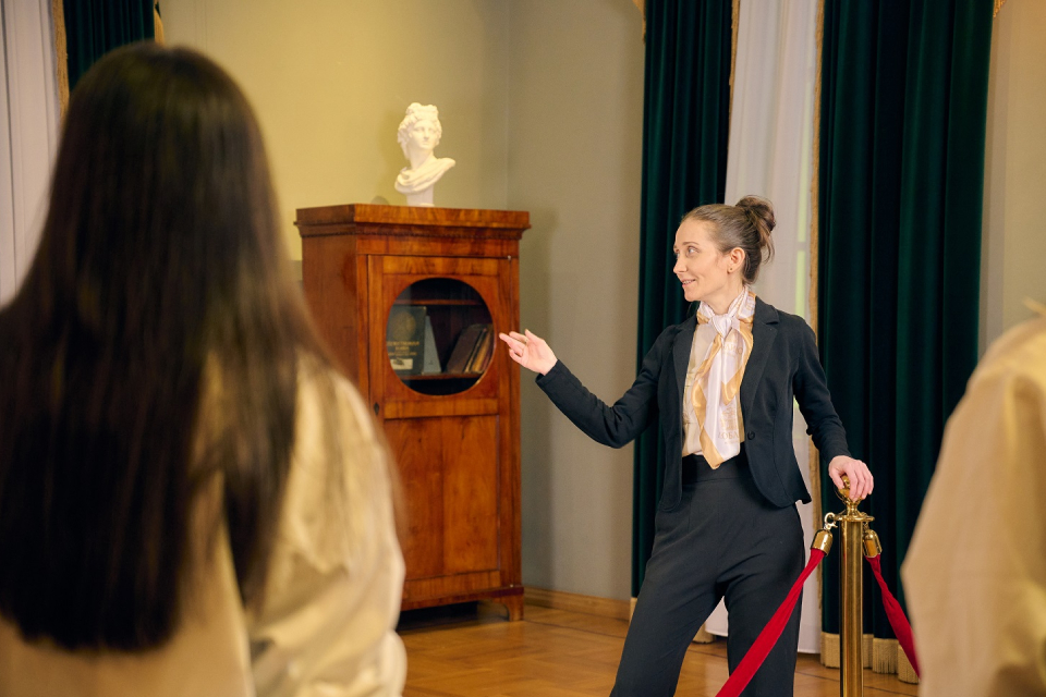 Усадьба Вяземы, где сейчас находится историко-литературный музей-заповедник Пушкина, предлагает отправиться в путешествие по парадным залам и жилым покоям. Осмотрите роскошные интерьеры, которые озарят свечи и желтые фонари. Группу сопровождает гид, так что не заплутаете. Гостям расскажут историю владельцев имения и дворцовые тайны. Здесь же в 20:00 и 22:00 покажут спектакль «В гостях у пиковой дамы» (2500 руб.).