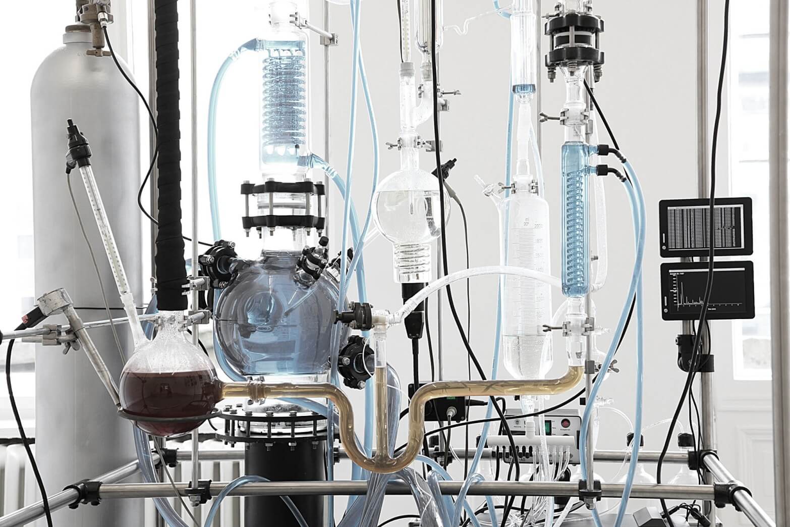 Австрийский художник Томас Фойерштайн подготовил биохимическую инсталляцию Poem. Специальный аппарат захватывает первобытный «первичный бульон» из воздуха, выдыхаемого посетителями, и перегоняет его в пригодный для питья алкоголь.