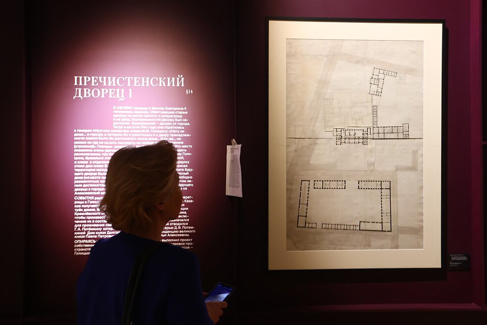 Посетители смогут узнать историю Пречистенского дворца, возведённого в рекордные сроки в 1775 году специально для императрицы. В этом разделе представлены чертежи, портреты и элементы декоративного искусства, которые ярко иллюстрируют дворцовую жизнь: службы в домовой церкви, пышные обеды, «турецкие маскарады», вечерние карточные игры и рукоделие императрицы.