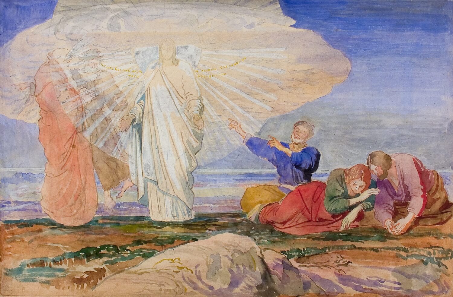 По замыслу художника, его эскизы должны были впоследствии появиться в настенных росписях «в особо на то посвященном здании, разумеется, не в церкви». В зале показывают видеоролик, который как раз визуализирует возможное воплощение замысла Иванова. На нем виден интерьер здания с росписями, для которых и были созданы акварельные листы.