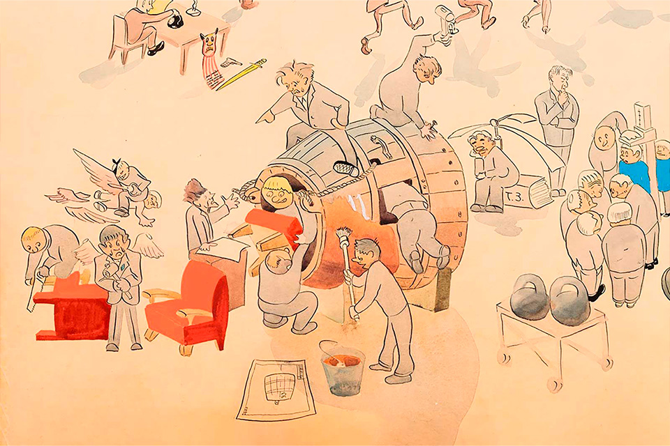 С 1957 года, когда Сергей Королев создал отдел № 9 и поручил руководство Михаилу Тихонравову, коллектив инженеров и конструкторов работал в плотном графике. Но находил время для игр, пикников и совместного досуга. В обеденный перерыв сотрудники устраивали товарищеские матчи, запускали самодельные «ракеты» из валидола и горючей пленки, а вечером собирались для творчества, превращая достижения и события года в карикатурные и символические стенгазеты.