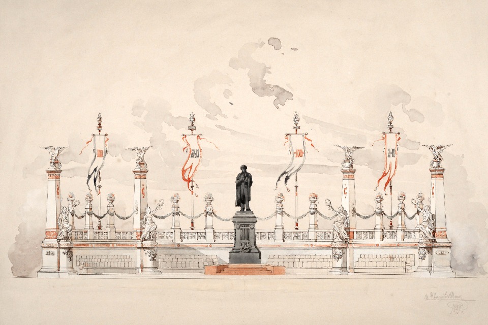 Отдельный раздел рассказывает о мемориальных проектах и замыслах оформления городских пространств, связанных с важными государственными событиями, включая работы, ранее неизвестные и атрибутированные специально к выставке. Далее внимание смещается к жилищной архитектуре: от частных особняков, отражающих разнообразие московской застройки рубежа веков, до социальных проектов — домов дешёвых квартир и ночлежных домов.