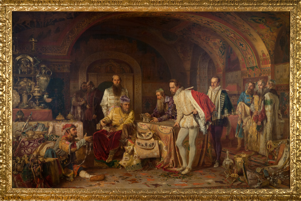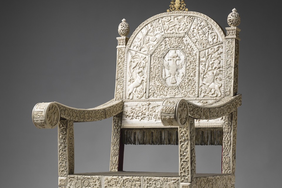 В XIX веке появился известный экспонат Оружейной палаты — Костяной трон. Ранее его считали даром, предположительно преподнесенным греческим послом великому князю Ивану III Васильевичу в честь его брака с Софьей Палеолог. Позже этот трон был связан с вымышленным владельцем, царем Иваном Грозным, возможно, из-за скульптуры Антокольского (1843-1902), на которой Иван IV изображен именно на этом троне. У Шапки Мономаха, созданной в 1682 году, также появилась фантастическая биография. Она стала «венцом великой княгини Ольги», которая, предположительно, вывезла ее из Царьграда, а также «короной, которую использовал царь Иоанн Васильевич при официальных выходах».