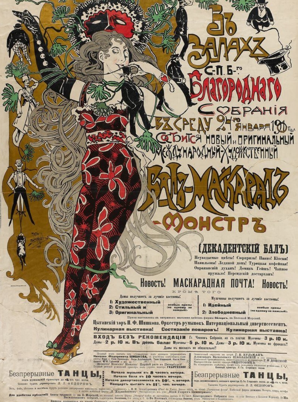 Посетители смогут вновь увидеть легендарные произведения Головина, Богаевского, Бродского, Савинова, Боткина и многих других мастеров начала ХХ века. Представлена живопись, скульптура, рекламные плакаты и афиши, которые стали средством коммуникации высокого искусства с запросами обывателей на рубеже 19 и 20 веков. В ту пору многие звезды жанра привнесли в художественный язык плаката приемы станковой живописи и графики, книжной иллюстрации, открытки, театрально-декорационного искусства. Подобные работы активно печатались в популярном журнале «Нива».