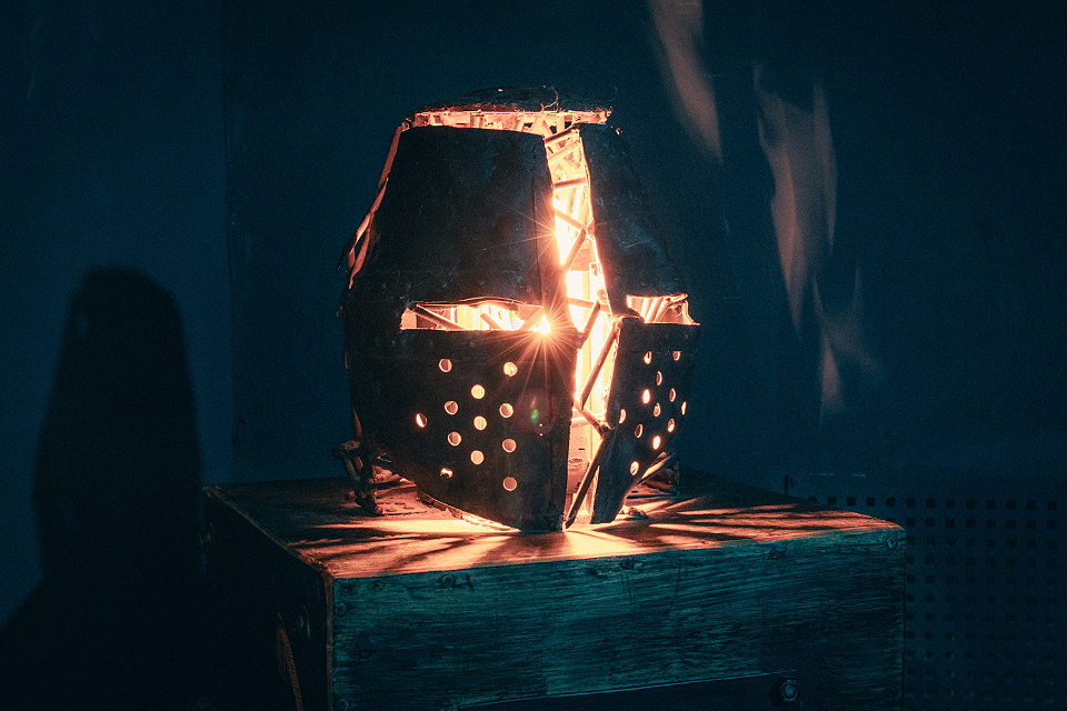 Иван Фадин через свои работы исследует тему изменений и многозначности. Его «Вращающийся куб» показывает, как привычная геометрия и свет могут взаимодействовать со временем и пространством, а «Железный шлем» становится символом превращения защитной формы в часть искусства. Подвижные элементы создают впечатление живого объекта, который адаптируется к окружающему миру.
