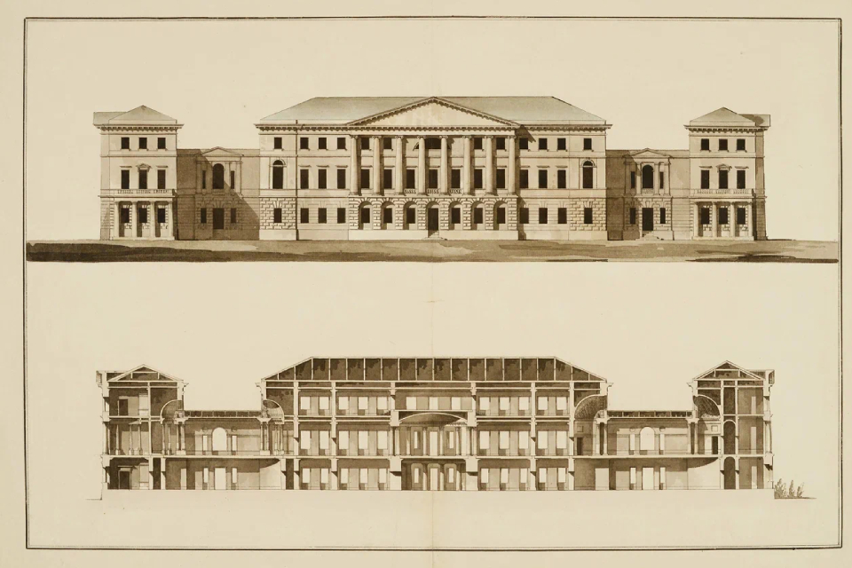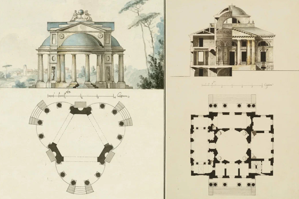 Большую часть коллекции Николая Львова составляет графика, относящаяся к храмовому строительству. Открывают экспозицию листы с проектом собора Св. Иосифа в Могилеве, созданным в 1780 году для того, чтобы отметить важное для России дипломатическое событие: переговоры императрицы Екатерины II и австрийского императора Иосифа II. Именно поэтому уже в 1782 году с чертежей была выполнена специальная серия гравюр. В пояснительных надписях зафиксирована архитектурная программа зодчего, вложенная в это сооружение.