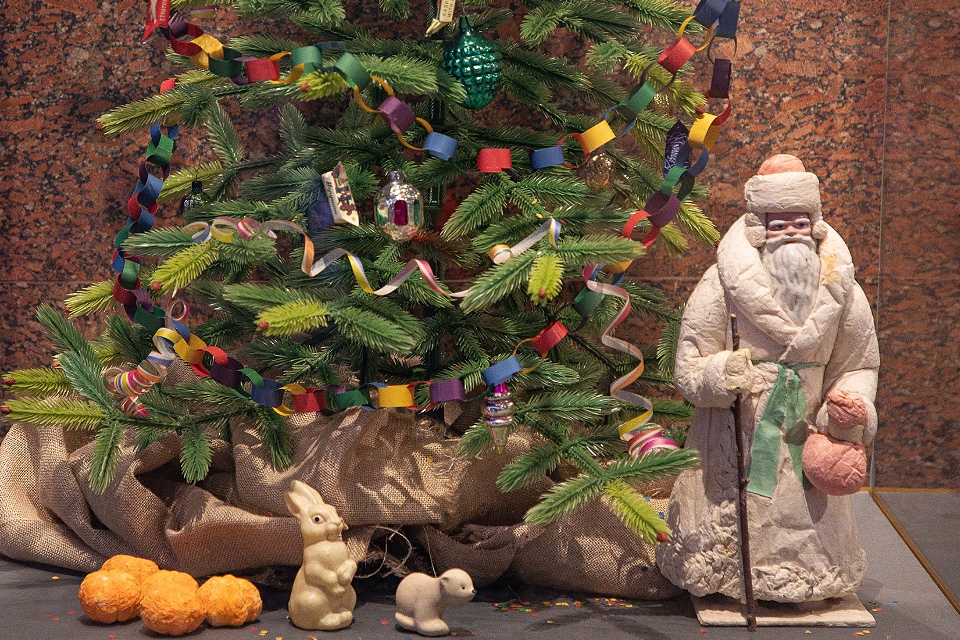 Экспозиция объединяет более 70 предметов из фондов Музея Победы и Российской государственной детской библиотеки. Основу составляют ёлочные игрушки 1930–1950-х годов, среди которых стеклянные, ватные, картонные и сделанные вручную украшения. Посетители увидят игрушки из мишуры, проволоки и стекляруса, в том числе необычное украшение «Букет цветов». Особое место занимают игрушки по эскизам художницы Маргариты Димзе, которые в своё время украшали практически каждую советскую ёлку.