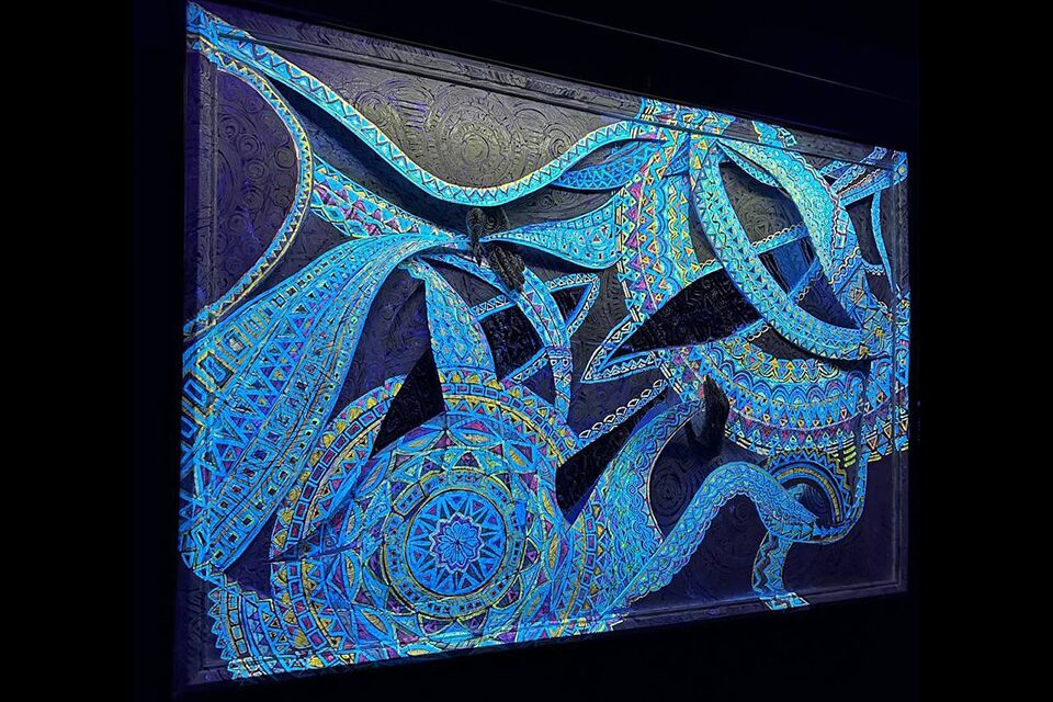 Посетителей ждали яркие и необычные инсталляции, интерактивные, кинетические и световые объекты. Все они связаны с люминесцентной живописью. Герои этих работ оживали и выходили в реальность.