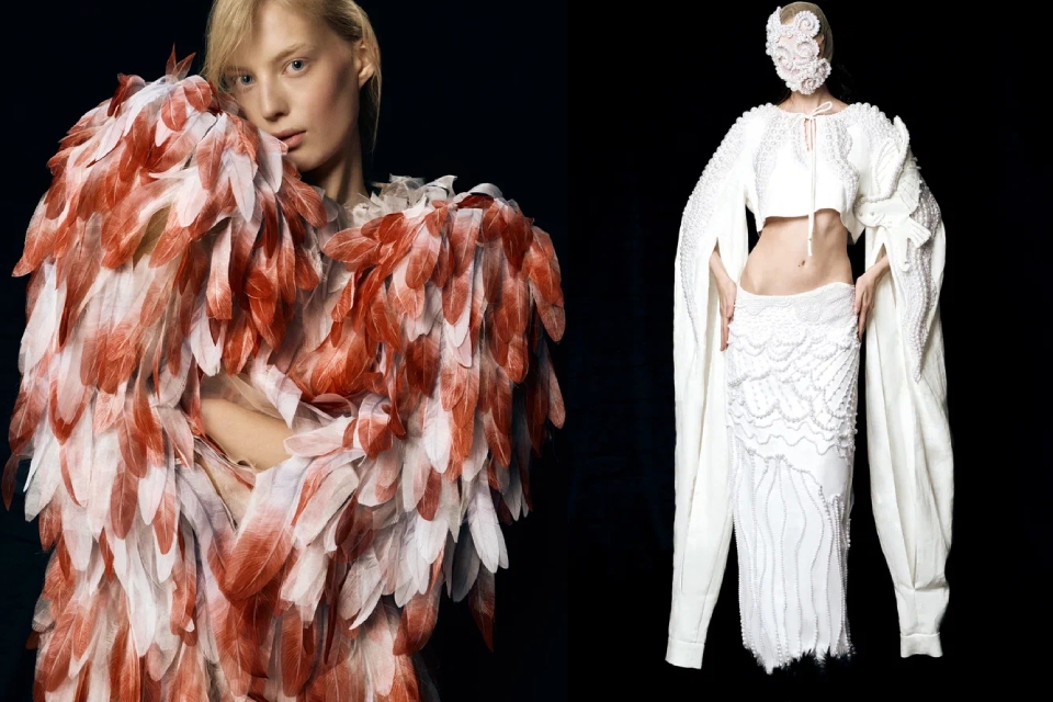 Особое внимание уделено кутюрным моделям Алёны Ахмадуллиной, созданным специально для выставки. Среди них — платье «Божественная Майя» из Эрмитажа, посвящённое Майе Плисецкой, и уникальное платье из эко-материала Тайвек, подготовленное к Дню Земли 2025 года. Эксклюзивно для выставки разработаны и другие модели, каждая из которых раскрывает авторский взгляд на русскую культуру и современную моду.