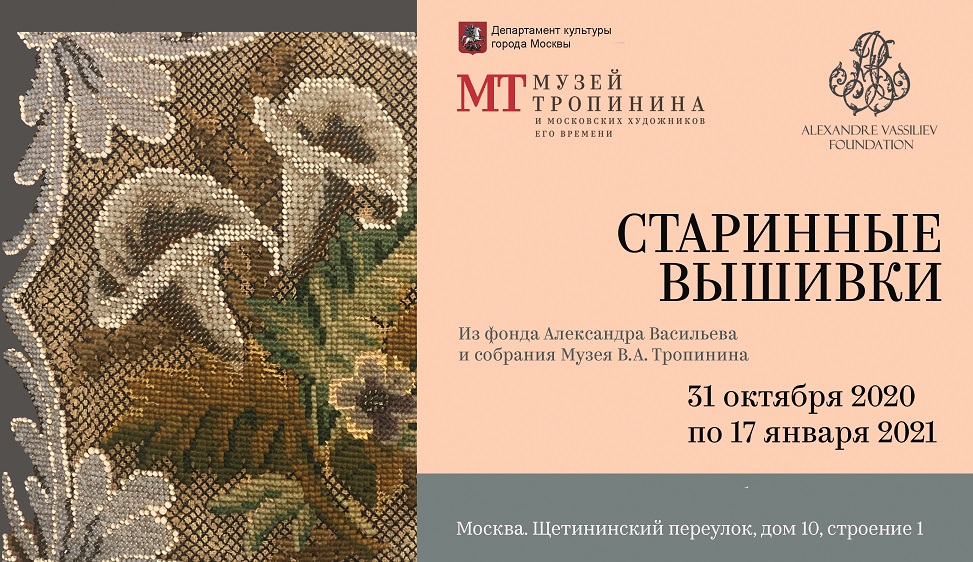 30 октября 2020 года в музее В.А. Тропинина открывается уникальная выставка «Старинные вышивки». Ее музей организуется совместно с Фондом Александра Васильева, знаменитого коллекционера и историка моды.