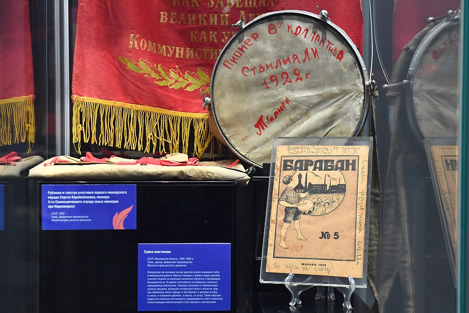 Фотографии, документы, книги, пионерские значки, галстуки и барабаны — всего на выставке представлено больше 500 экспонатов. Каждый хранит свою историю.