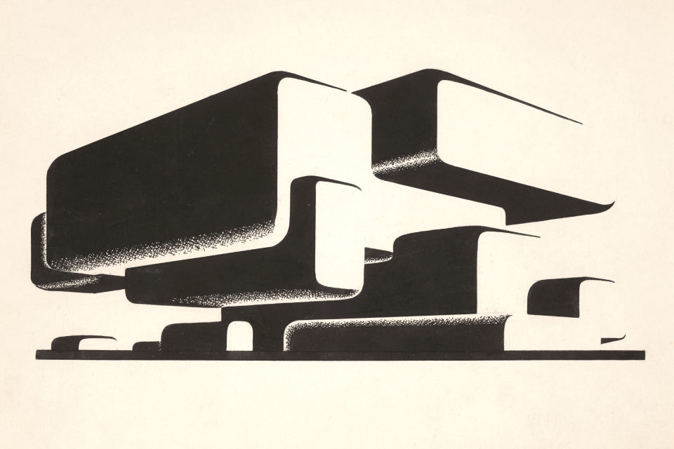 Композиция из цикла Аристография, 1918 - 1924. Фото: предоставлено выставкой «Яков Чернихов. Образ будущего. Архитектурные фантазии русского авангарда»