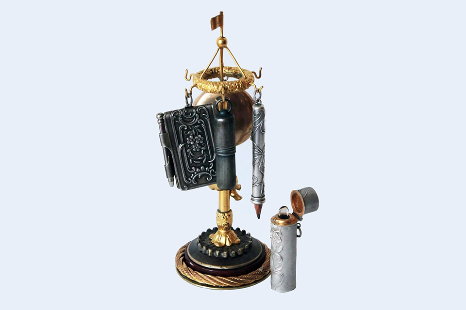 Экспозицию поделили на два зала. Первый знакомит с дамскими образами дореволюционной эпохи. Это редкие дорожные наборы для парфюма, душистые чернила, капоты, веера, сумочки, шатлены — поясные украшения в виде цепочки с зажимом, на которое крепились, бальные книги, карандаши, кошельки и даже флакончики для духов.