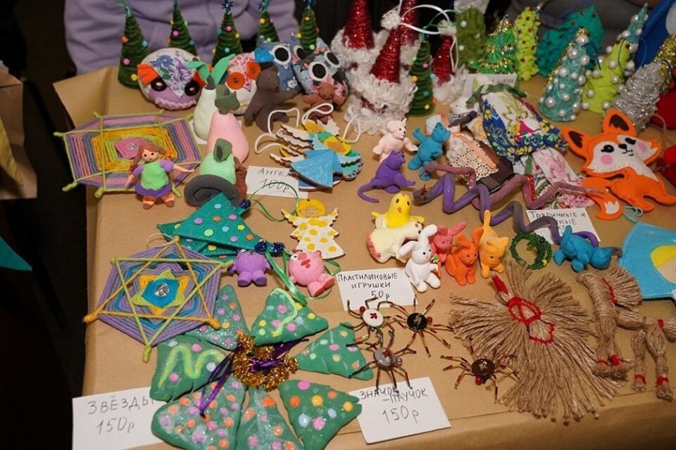 На ярмарке представят сувениры, декоративные предметы, керамику, украшения, елочные игрушки, живописные работы и другие изделия, подготовленные различными мастерскими. Среди них: «Артель Блаженных», «Особая керамика», «КТО», и другие.