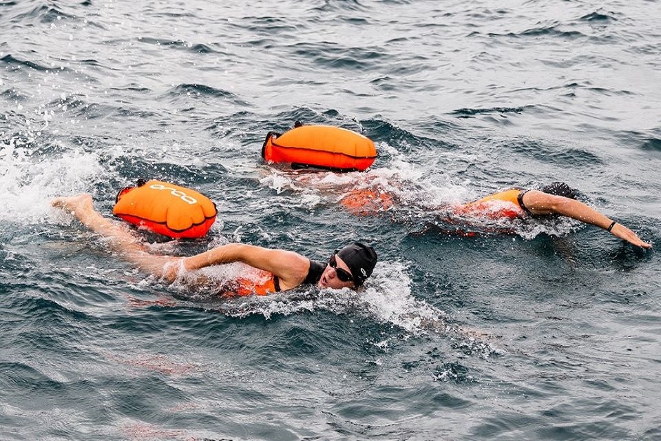 Каждый участник поплыл с индивидуальным плавательным буем, раскрашенным в цвета флага России. За день до старта открытым голосованием выбрали знаменосца – того, кто поплывет с флагом России.