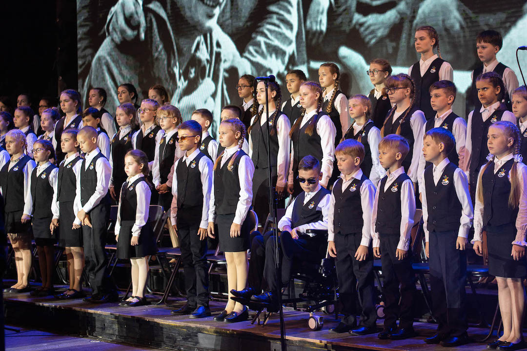 — Военная тема в концерте пересекается с детской, причем сразу в нескольких плоскостях: и в тематике песен и стихов, и в сюжетах видеоряда, и в том, что большинство выступающих на концерте — дети, — отмечают организаторы концерта.