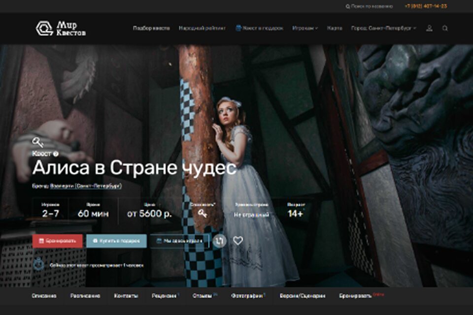 Игрокам предстоит познакомиться с Чеширским Котом, завести беседу с Безумным Шляпником, а также перехитрить Красную Королеву, разгадав ее страшные тайны. У команды есть всего час, но смекалка и взаимовыручка обязательно приведут к победе. Дети проникнутся сказочным настроением, а взрослые по достоинству оценят закрученный сюжет и меткие литературные отсылки.