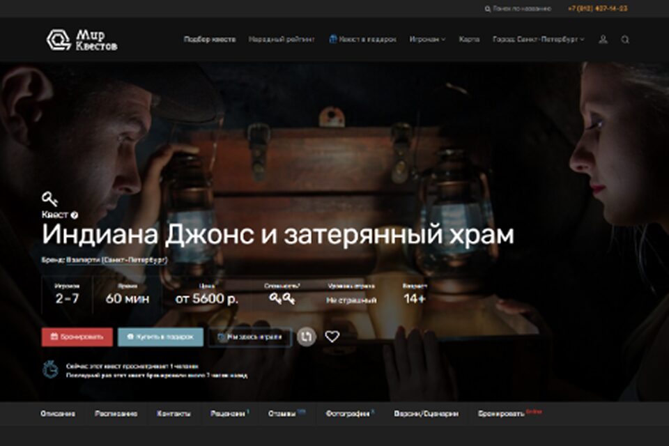 Командная игра рассчитана на людей старше 14 лет, но для команды помладше есть возможность нанять местного аниматора. Квест больше всего понравится аудитории, знакомой с миром Индианы Джонса, а также любителям традиционных командных квестов. Загадки и испытания построены на комбинации продуманных технологий и эффектного визуального оформления.