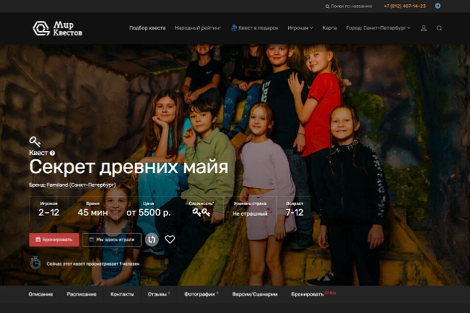 Атмосферу приключения усилят красочные декорации Мексиканских тропических лесов. Профессиональные артисты проведут игроков по локациям, расскажут о непростом труде археологов и посвятят в детали истории загадочного народа майя. Квест доступен даже юным игрокам от 6 лет, но взрослые также оценят его по достоинству.