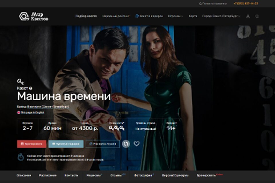 Оригинальный квест «Машина времени» предлагает своим участникам не просто посетить несколько различных исторических эпох, но и попытаться повлиять на сам ход истории. Вот только возвращение в настоящее время после такого может обернуться большим удивлением. Игроки будут взаимодействовать со сложными технологическими устройствами и непосредственно участвовать в сюжетной линии.