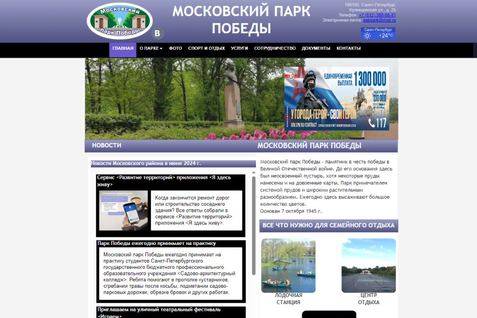 Парк делится на две части – мемориальную и зону для активного отдыха. Первая подходит для тихих прогулок, на второй работает Центр отдыха, где можно поиграть в настольный и большой теннис, бадминтон, покататься на роликах и велосипедах. Зимой на территории парка открывается ледовый каток. Есть аренда спортивного инвентаря. Летом одно из главных мест притяжения – это лодочная станция на прудах, где можно взять на прокат катамаран или лодку.