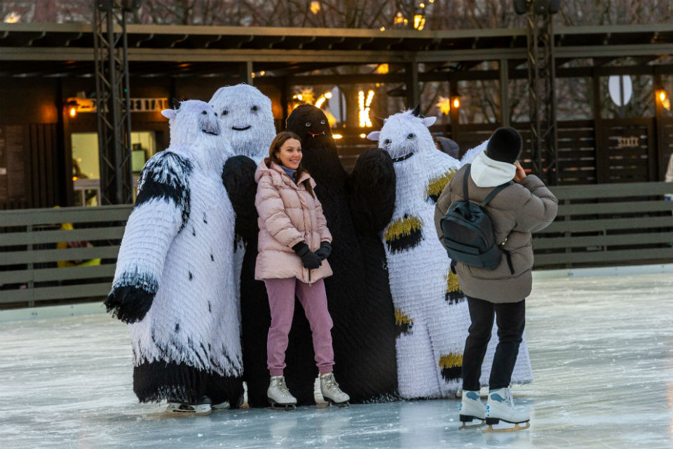 Одно из популярнейших городских пространств встретит гостей праздничным убранством и разнообразными угощениями. На территории острова работает открытый каток площадью более 2 тысяч квадратных метров. Одновременно на лед выпускают до 200 человек, что довольно немало. Билеты можно приобрести только онлайн на официальном сайте, катание происходит по часовым сеансам. Цена билетов меняется в зависимости от времени суток и дня недели. Аренда коньков обойдется в 390 рублей.