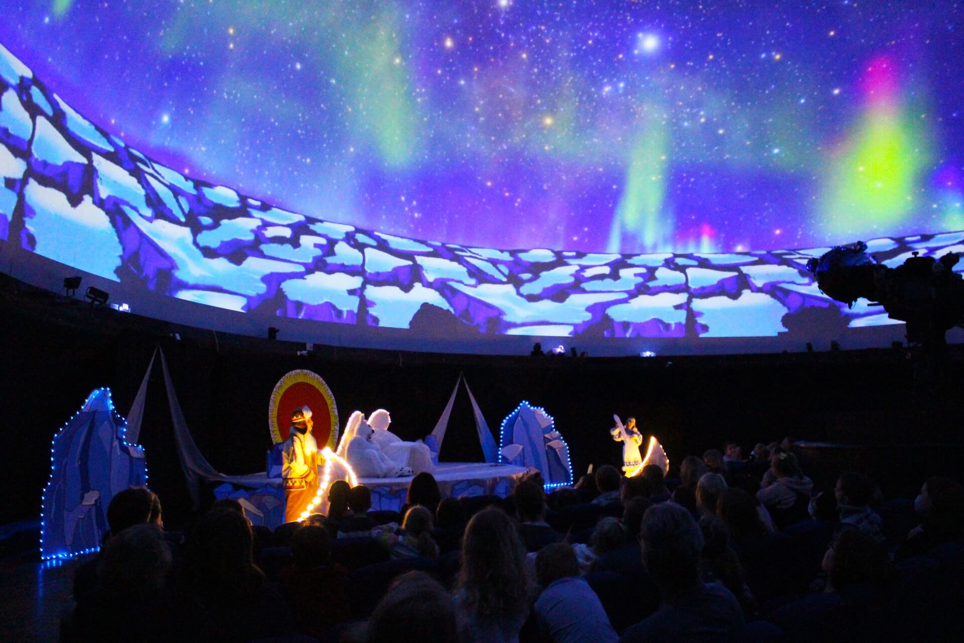 Это сказочная история о медвежонке, который отправляется в путешествие с Северного полюса на Южный и находит ответы на интересующие вопросы: почему же хрустят льдины и вкусное ли на самом деле северное сияние. Маленькие зрители вместе с Умкой узнают больше о жителях полюсов, о глобальных экологических проблемах и, конечно, о созвездиях и галактиках нашей вселенной. В пути главный герой обретет друга, бесстрашного мальчика, который расскажет, как мы можем спасти планету от гибели и сохранить природу. В конце программы дети получат памятные подарки и сувениры.