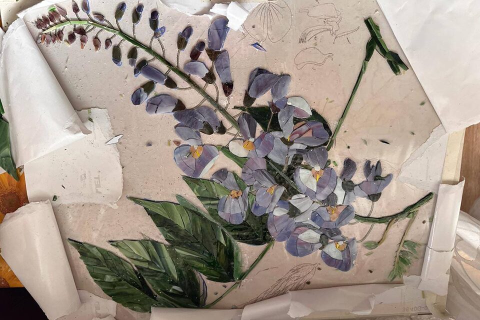 Экспозиция включает более 70 мозаичных произведений из камня, смальты и витражного стекла. Среди них можно увидеть изображения растений, описанных учеными БИН РАН, редкие и исчезающие виды, экзотические формы и копии старинных ботанических иллюстраций. Среди них и работы Марии Сибиллы Мэриан, которые высоко ценил сам Петр Великий.