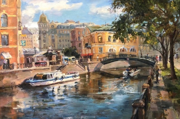 Художница Юлия Боско презентовала выставку «Северная Венеция», посвященную своему родному городу Петербургу. На картинах изображены исторические и современные здания, лодки, яхты, катера, корабли. Все это отражается в реках и каналах города. Девушка улавливает утренний туман, яркий закат, белые ночи и другие проявления природы. Выставку дополняют работы петербургского скульптора Исала Жумабаева.