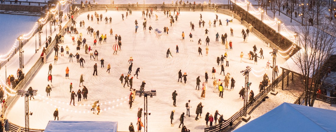 В эту субботу, 26 ноября, на острове Новая Голландия откроется традиционный сезон катаний. Ледовое поле площадью 2000 квадратных метров расположится на месте газона у Главной сцены. Фарфоровую статуэтку фигуристки, саму деревянную сцену, а также афиши и плакаты оформили в ретро-футуристическом стиле. В течение недели на льду будут проходить тематические музыкальные сеансы. В выходные, например, посетители услышат музыку ночной жизни европейских курортов 80-х и произведения из классических балетов «Спящая красавица», «Щелкунчик», «Баядерка». У выхода на лед разместятся очаги с огнем и креслами, где каждый желающий сможет отдохнуть, не снимая коньки.