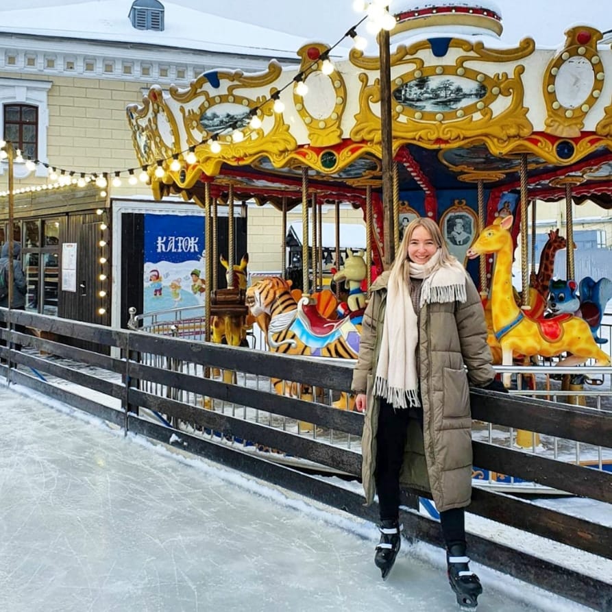 Во внутреннем дворе Гостинки открыт каток. Работает он ежедневно с 12:00 до 21:00 (последний сеанс в 20:00). Покупать билеты лучше онлайн, так как не придется стоять в очереди на морозе. В будние детский билет стоит 250 рублей, взрослый — 350 рублей. В выходные цены выше: детский — 350 рублей, взрослый — 400 рублей. Есть прокат. После покатушек там можно и подкрепиться: возле ледовой площадки стоят фуд-траки. А для детишек еще есть несколько развлечений — карусель и волшебный паровозик. Где еще в Петербурге открыты катки, смотрите здесь.