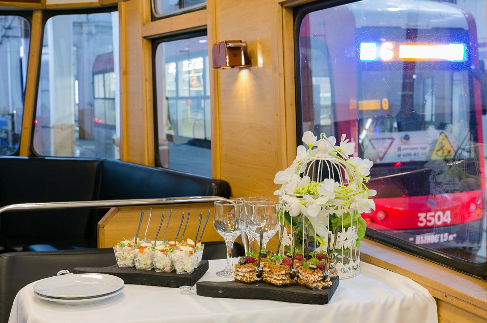 Музей городского электрического транспорта специально ко Дню Св. Валентина подготовили праздничный трамвай-ресторан, из окон которого вы увидите уникальные пейзажи Северной столицы, наслаждаясь душевными звуками аккордеона, песнями про любовь и танцами для двоих. Самое настоящее романтическое свидание. Это будет двухчасовая прогулка по центру города за столиком с изысканными закусками, живой музыкой и фотосессией прямо в трамвае.