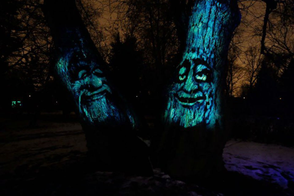 Когда к вечеру на улицах Петербурга темнеет, и повсюду включается праздничная иллюминация, жителей и гостей города приглашают в Ботанический сад — на мультимедийную прогулку по владениям Царицы ночи «Сад света». Уникальная световая инсталляция включает в себя 17 локаций, где можно не только пофотографироваться среди мерцающих деревьев, но и даже, громко крикнув в микрофон, заставить распуститься огромные цветы или подуть на луч света и увидеть бегущую лошадь.