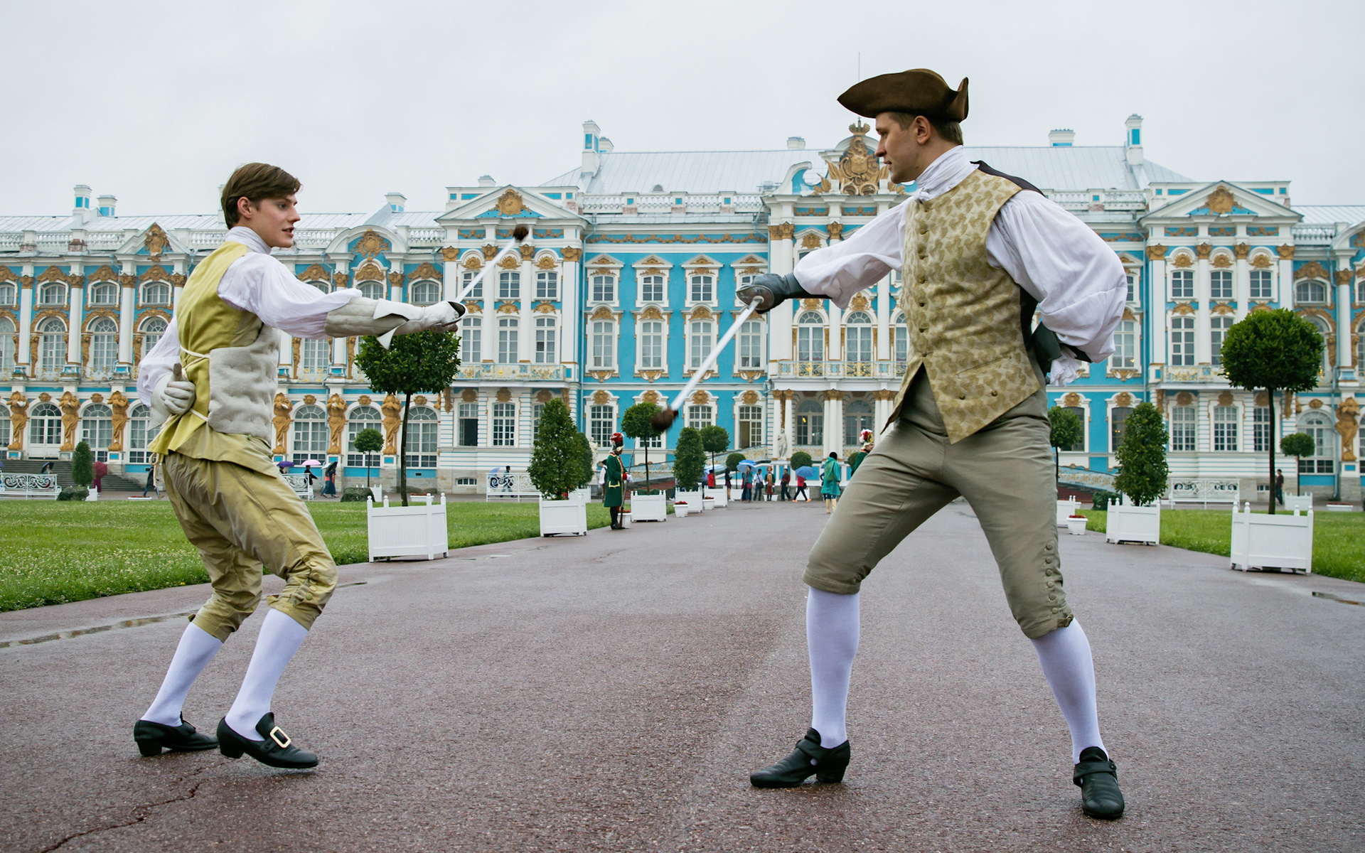 Внимательные зрители смогут рассмотреть петербургские локации: Екатерининский дворец, крепость Орешек, а также Летний сад.