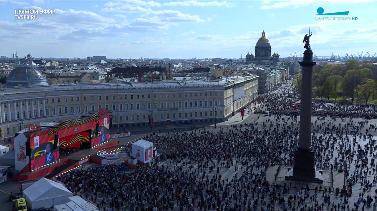 9 мая 2025 года на Дворцовой площади в Санкт-Петербурге состоялся праздничный концерт в честь 80-летия Победы советского народа в Великой Отечественной войне. С Днем Победы жителей и гостей города на Неве поздравили звезды российской эстрады. На этой странице в 15:00 началась прямая онлайн-трансляция музыкального марафона.