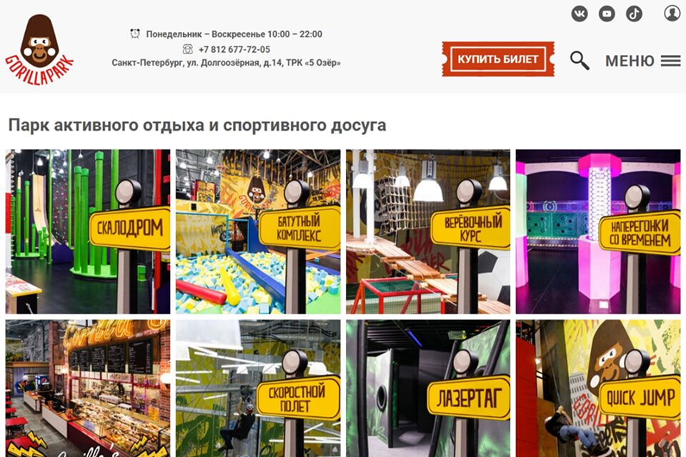 Любители активного семейного отдыха могут отправиться в GorillaPark. Площадь комплекса для спорта и экстрима составляет 4 000 квадратных метров. На одной площадке собраны скалодром, веревочный парк, батуты, тарзанка и лазертаг.