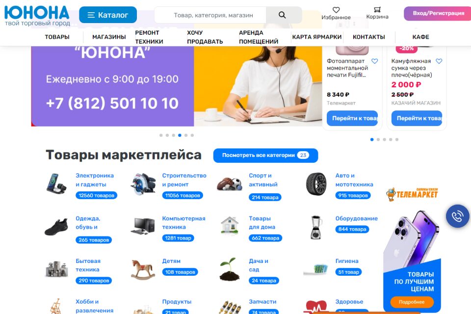 На «Юноне» — самом большом рынке южной части города — уже много лет собираются все любители электроники, программисты и инженеры, ведь здесь представлен самый большой выбор техники по доступным ценам в Санкт-Петербурге. Однако стоит быть аккуратными, так как не весь товар проверенный и качественный. Но дешевая аппаратура — не самое интересное, что здесь есть. Прямо перед входом на «Юнону» развернулся настоящий блошиный рынок, где можно найти практически все — от ржавых гвоздей до коллекционных сервизов. В отличие от Удельного рынка, продавцы «Юноны», в первую очередь, отвечают за практичность своих товаров.