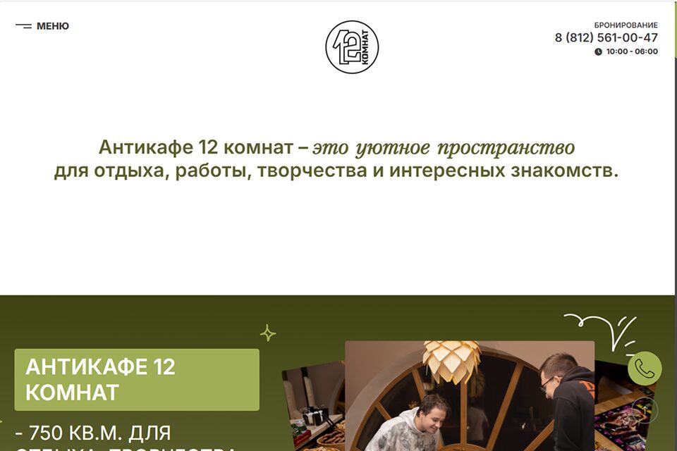Особая гордость «12 Комнат» – кинозал с широкоформатным проектором и уютной мебелью: мягкими мешками, подушками и пледами. Здесь можно не только посмотреть любимые фильмы или сериалы, но и провести лекции, презентации и тематические кинопоказы. Вкусный китайский чай, свежие сладости и непринужденное общение создают особый дух места, куда хочется возвращаться. Помимо кинозала, в пространстве есть игровая зона с приставками, настольным теннисом, кикером и досками для мафии.