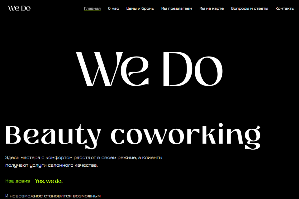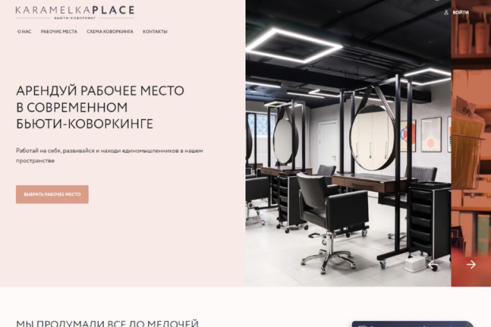 Пространство для комфортной работы мастеров по макияжу, маникюру, парикмахеров и специалистов других сфер. Это почти готовый салон, помимо одного отличия — все работают сами на себя. Приятную атмосферу создают яркий дизайнерский интерьер, комната отдыха и много света. Персонал убирает зал в течение дня.