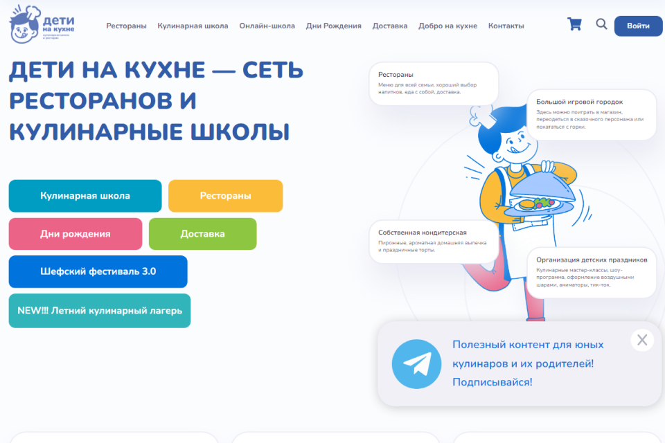 Прошли времена, когда вершиной детского кулинарного искусства были приготовленные на трудах блинчики и сваренная утром каша. Самых маленьких трехлетних поварят здесь обучат азам, с более старшими детками приготовят любимые многими нагетсы и сырники, а самые взрослые (с 7 лет) станут настоящими шефами и смогут подать драники из цукини с гуакамоле и панкейки с банановым соусом. На мастер-класс также можно записаться всей семьей.